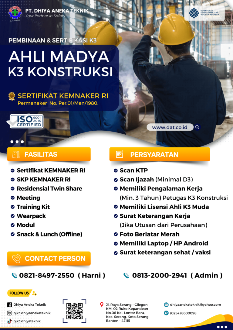 - Memiliki Pengalaman Kerja (Min. 3 Tahun Petugas K3 Konstruksi)