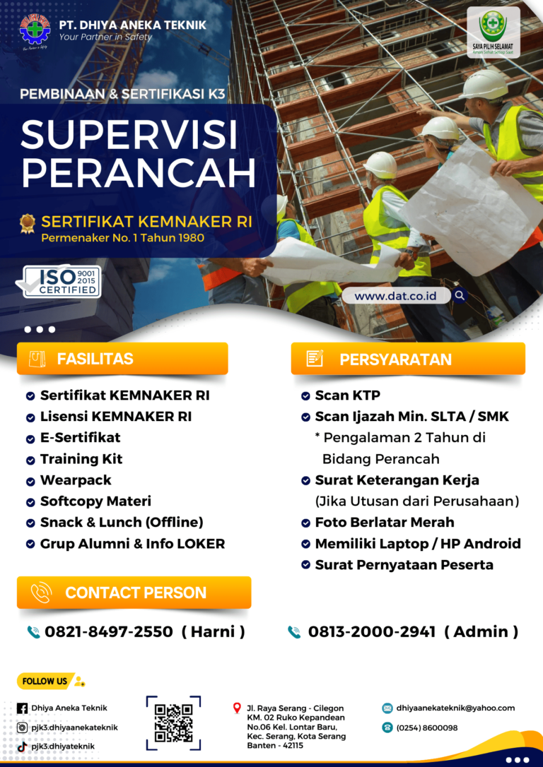 Pelatihan Supervisi K3 Perancah / Scaffolder bertujuan untuk memberikan pengetahuan dan pembinaan untuk Calon Ahli K3 Umum sesuai dengan Peraturan Menteri Tenaga Kerja Nomor PER.02/MEN/1992 Tahun 1992 Tentang Tata Cara Penunjukan Kewajiban dan Wewenang Ahli Keselamatan dan Kesehatan Kerja