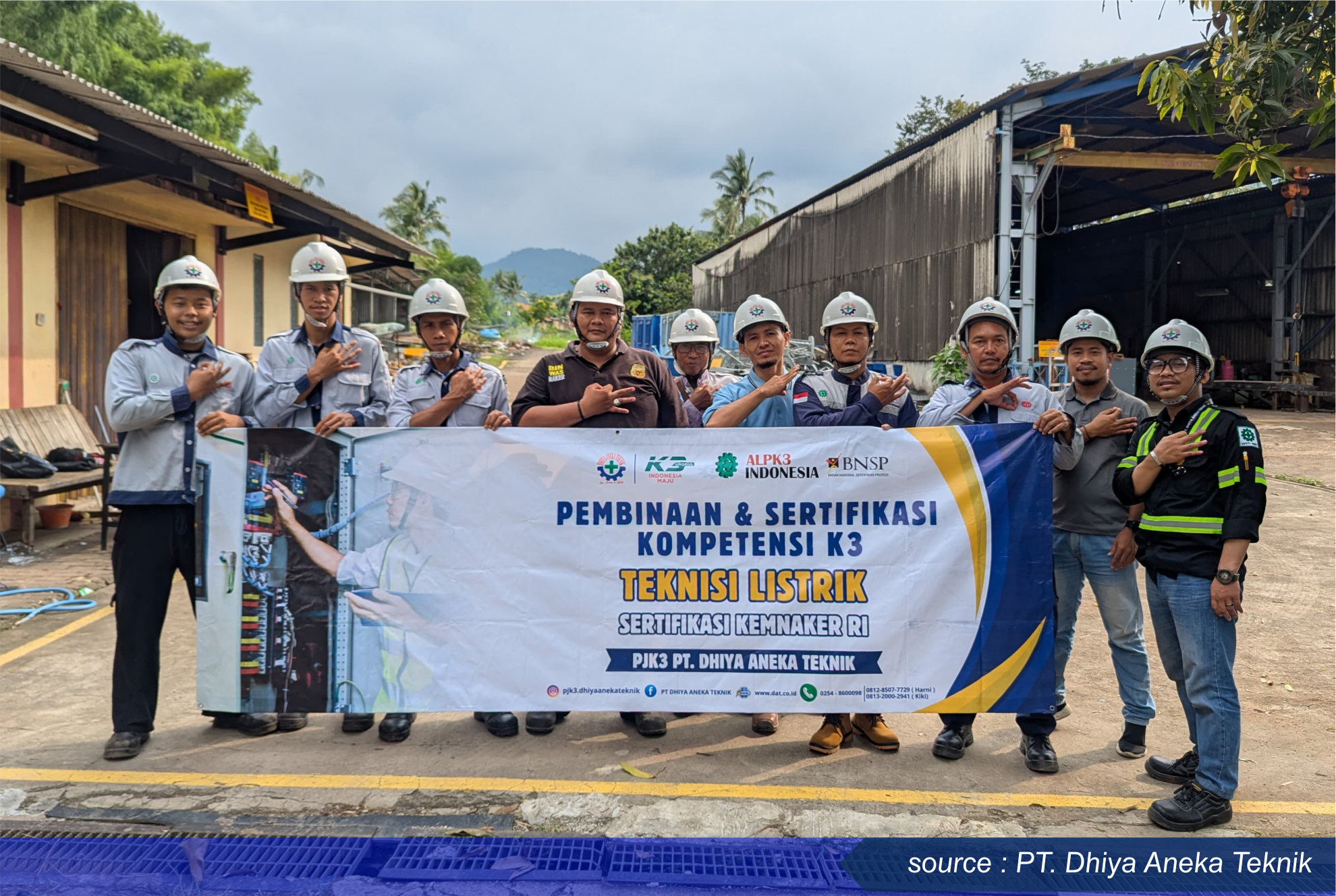Serang, 20-28 Februari 2025 – Sejumlah teknisi listrik dari berbagai perusahaan mengikuti pelatihan dan sertifikasi Keselamatan dan Kesehatan Kerja (K3) yang bekerjasama dengan PT. Dhiya Aneka Teknik selaku Perusahaan Jasa Keselamatan dan Kesehatan Kerja (PJK3). Pembinaan dan sertifikasi ini bertujuan untuk meningkatkan kompetensi tenaga kerja dalam menerapkan standar keselamatan saat bekerja dengan instalasi listrik.